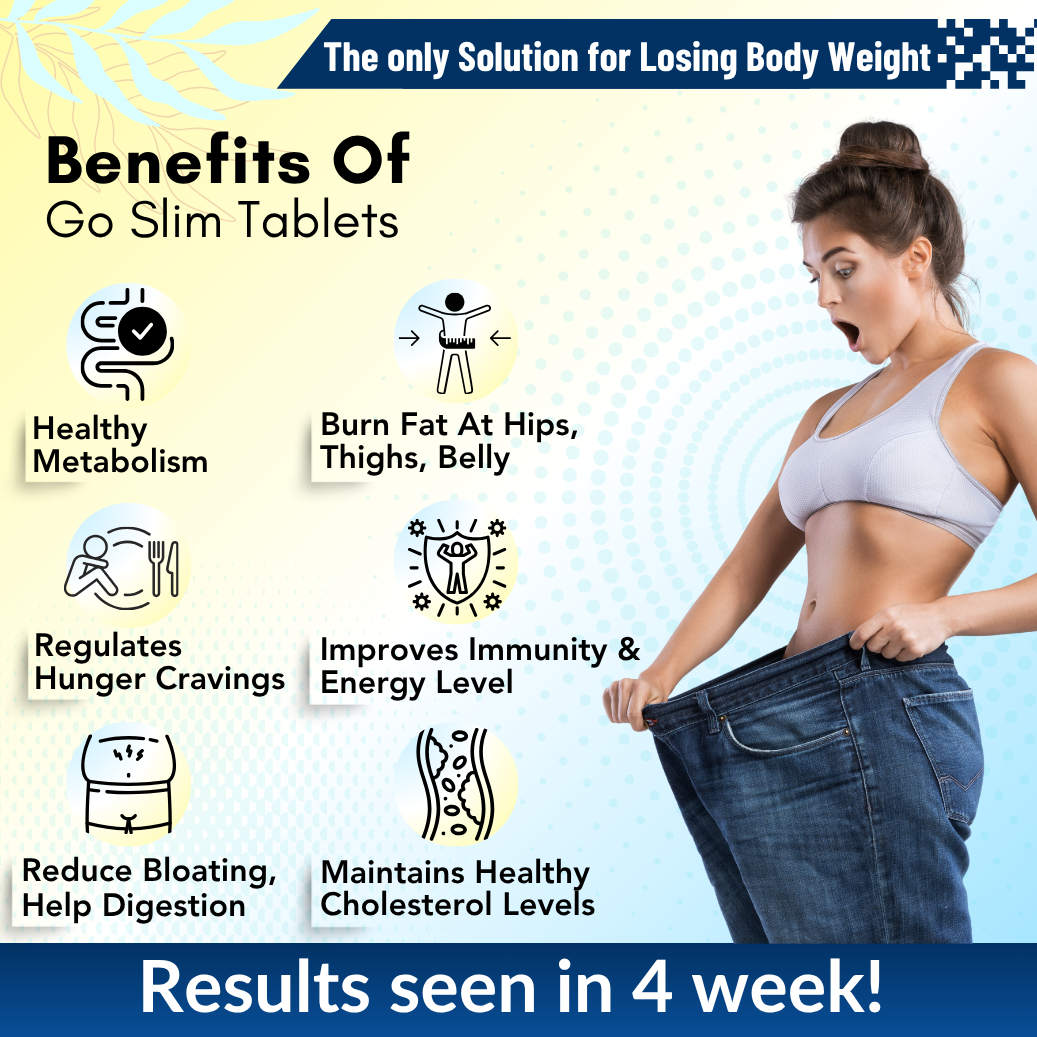 Go Slim For Weight Loss & Fat Burn | Targets Arms Thighs Hips Chin & Belly Fat | Boost Metabolism, Regulates Hunger Cravings | Advance weight loss supplement | 1000mg Tablet
